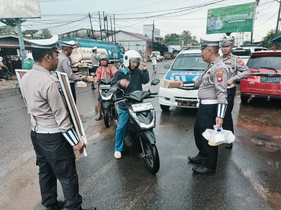 Ketapang – Dalam momen menjalankan ibadah di bulan suci Ramadhan, Polres Ketapang menggelar kegiatan sosial dengan membagikan takjil gratis kepada para pengendara dan masyarakat yang melintas di bundaran tugu ale ale Kecamatan Delta Pawan Kabupaten Ketapang, Selasa (04/03/3025),