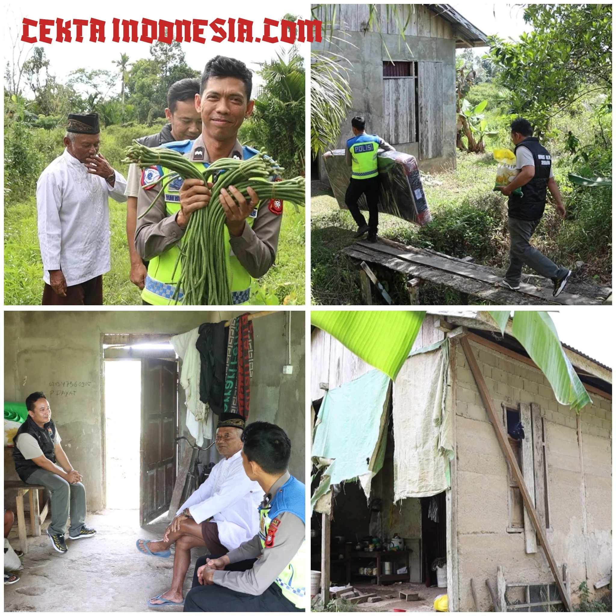 Mbah Kadir menyampaikan terima kasih dan mendoakan kebaikan bagi jajaran Polres Sekadau. Sebagai bentuk apresiasi, ia menyerahkan sayur kacang panjang hasil kebunnya kepada Aipda Yuni.