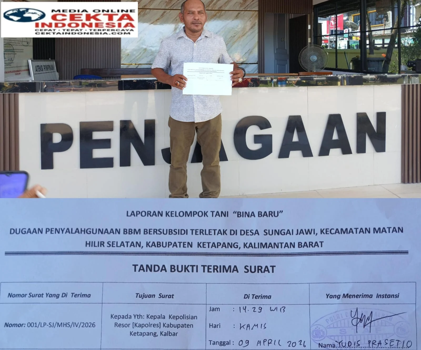 Dalam laporan bernomor 001/LP-SJ/MHS/IV/2026 yang ditujukan langsung kepada Kepala Kepolisian Resor (Kapolres) Ketapang, Ketua kelompok tani Bina Baru membeberkan uraian kejadian yang merinci modus operandi penyalahgunaan BBM tersebut.