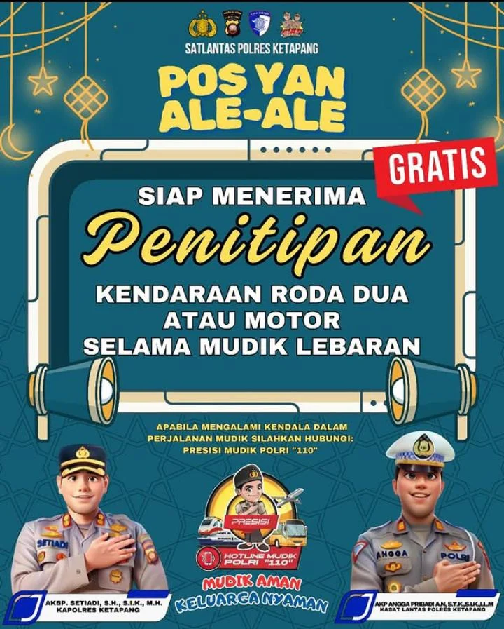 Ketapang – Jelang Hari Raya Idul Fitri 1446 Hijriah, Kepolisian Resor (Polres) Ketapang sediakan tempat penitipan kendaraan roda dua (motor) secara gratis bagi para pemudik.