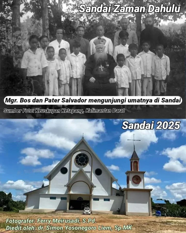 Foto atas = Mgr (Monsignor/Uskup) Pacifikus Bos dan Pater Salvador saat mengunjungi umat Katolik (Tionghoa) di Sandai. Mgr Bos tercatat pertama kali ke Ketapang tahun 1911 dan tahun 1917.(dr.Simon Liem Yosonegoro,Sp.MK)