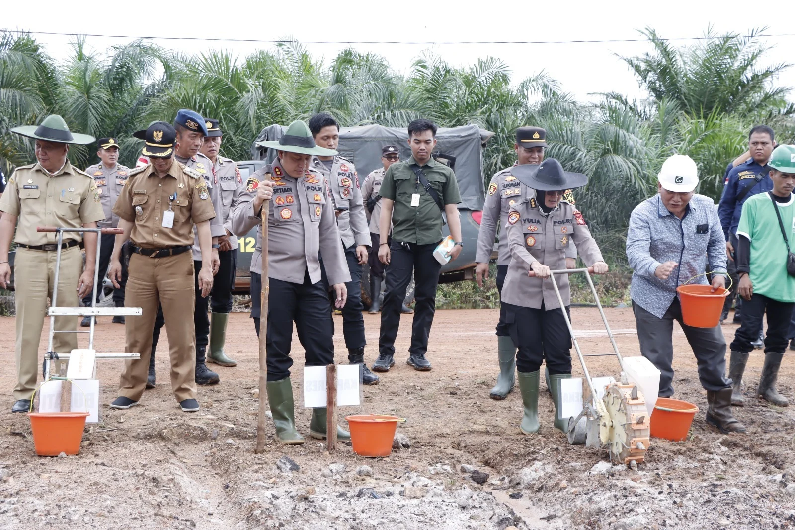 KETAPANG – Dalam rangka mendukung dan mensukseskan program Presiden Prabowo Subianto yaitu swasembada pangan serta mewujudkan ketahanan pangan nasional, Kapolres Ketapang AKBP Setiadi memimpin penanaman serentak bibit jagung bersama jajaran Forkopimda Kabupaten Ketapang dan pihak mitra perusahaan perkebunan.